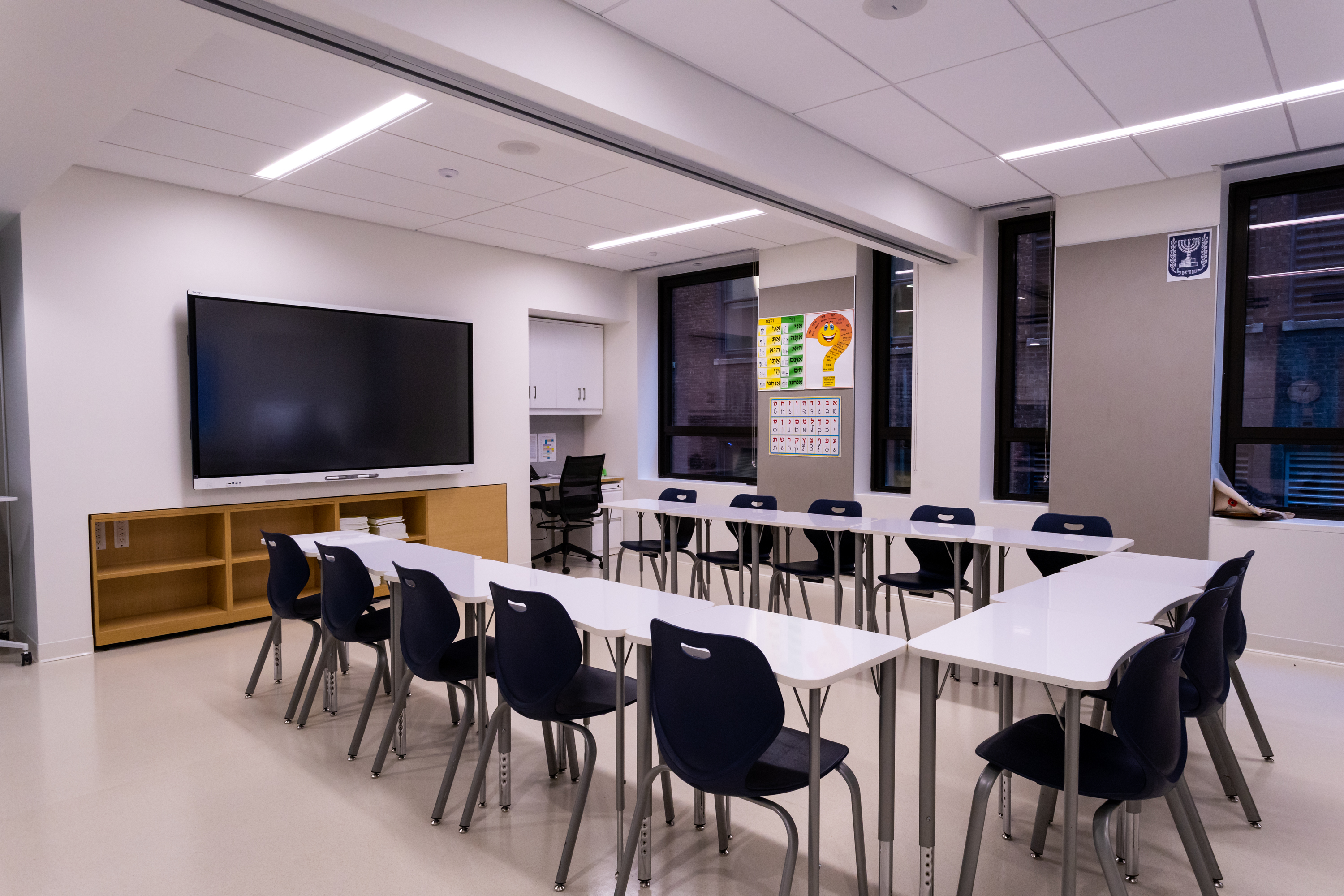 For the first time ever, the Shefa School now has our very own Beit Midrash. This beautiful new space was intentionally designed to be the ideal place for our students to study, pray, and learn. It allows for interactive experiences, such as joyous morning tefillah, exploration of Shabbat and holidays, and the study of the Torah. It also doubles as a large auditorium for professional development workshops and lessons for our faculty and staff.